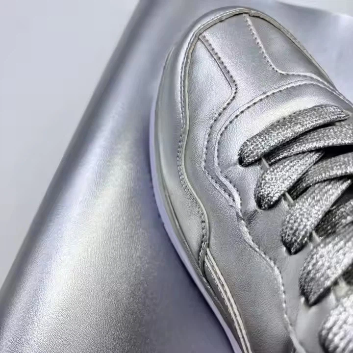 - Waħda mill-karatteristiċi standout ta 'din il-ġilda sintetika hija l-finitura metallika brillanti tagħha, li żżid mess ta' faxxinu u sofistikazzjoni ma 'kwalunkwe par ta' żraben. Sew jekk qed tfittex biċċa ta 'dikjarazzjoni grassa jew għażla aktar sottili u sottovalutata, dan id-drapp tal-ġilda mera ta' ltqajna.